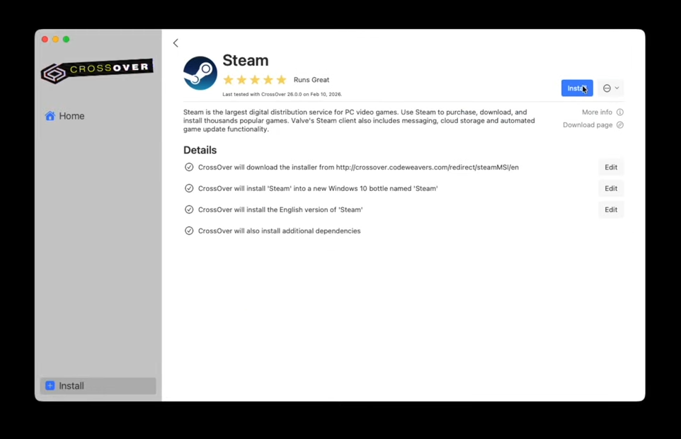 The first step is to establish a stable Steam environment within CrossOver to host the game.