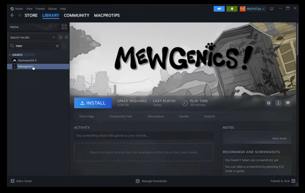 Launch Steam, log into your account, and install Mewgenics from your library.