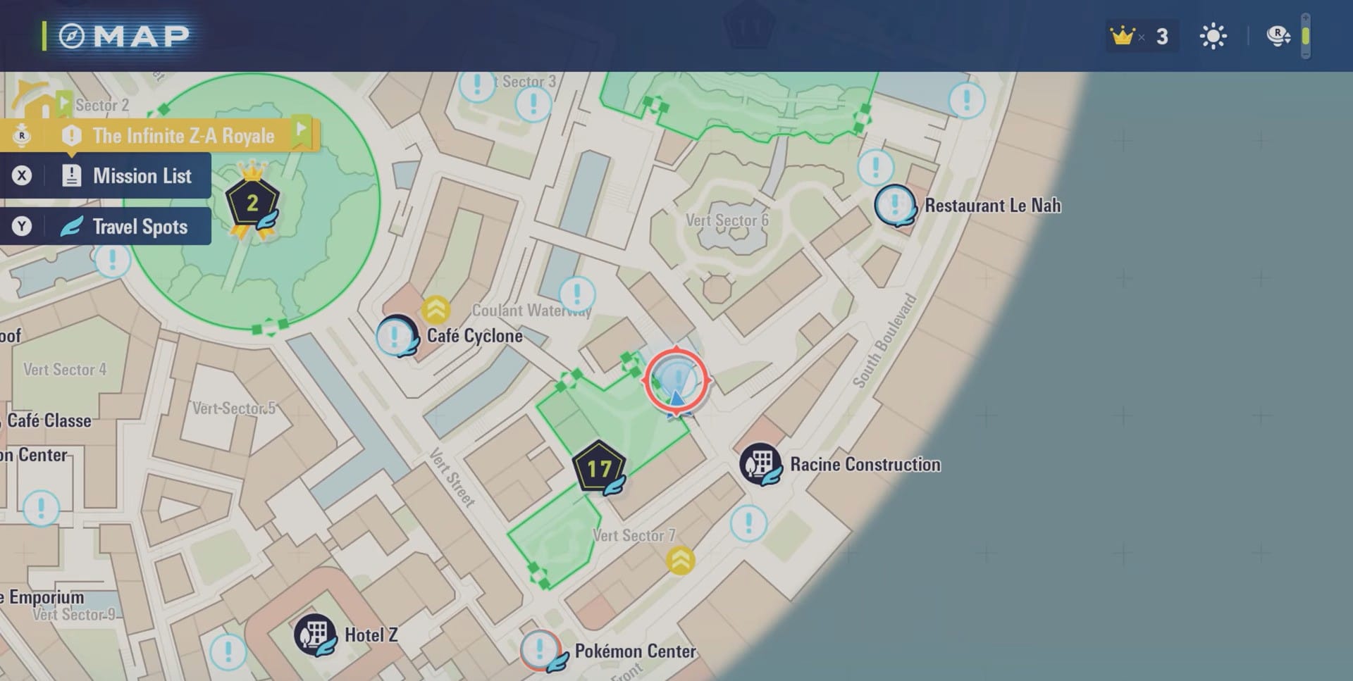Travel to Racine Construction in Lumiose City, accessible from the southeast section beyond Wild Zone 2.
