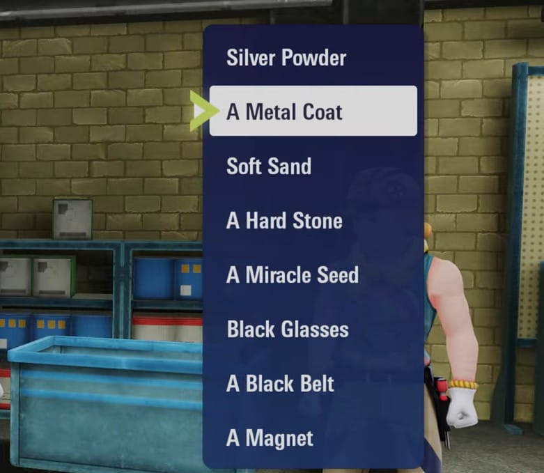 This is the most direct and repeatable way to obtain the item. Once you’ve reached Rank E, head to Lumiose City and enter Racine Construction. Inside the garage area, look for two workers; the one on the left sells Metal Coat.
