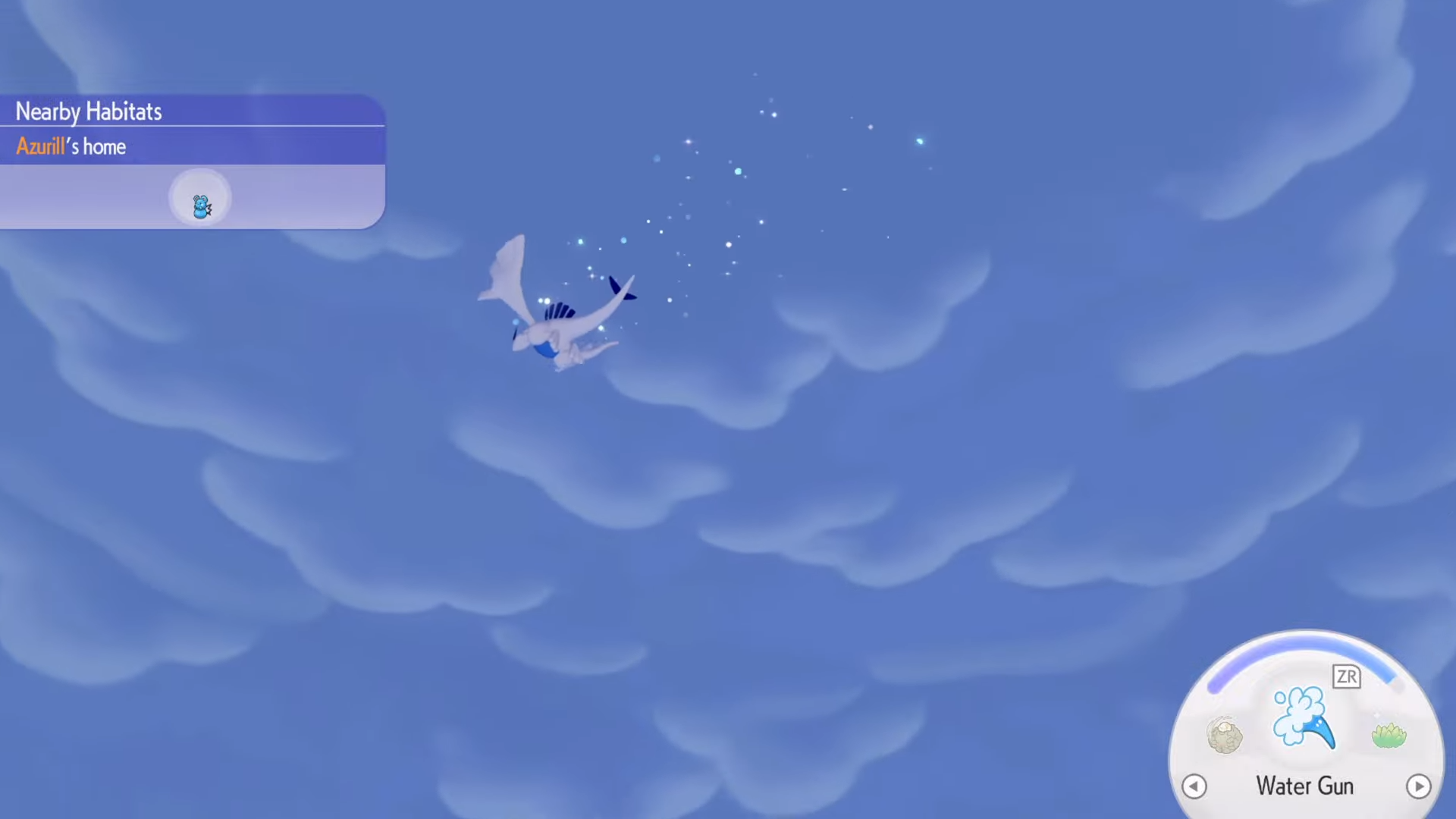 Lugia flies overhead randomly while you play, rebuilding the world and befriending Pokémon.