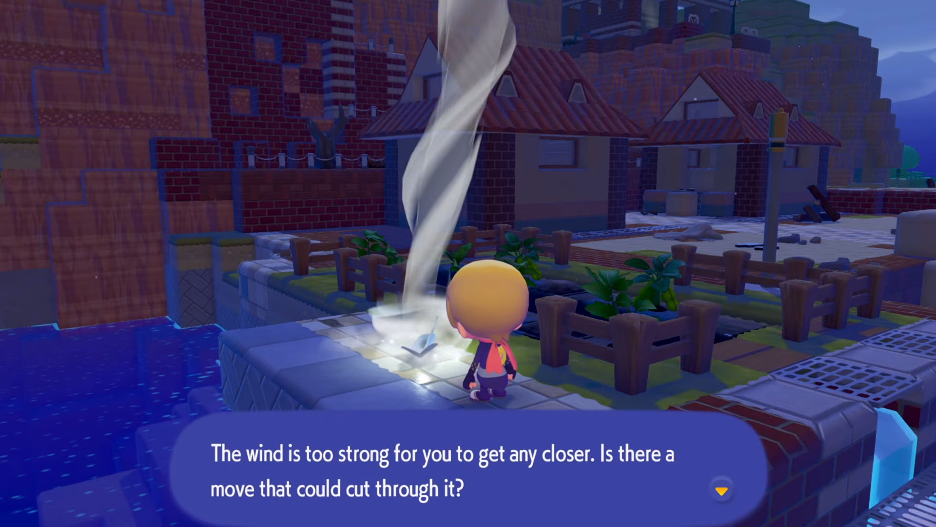 Select your Cut-capable Pokémon and use the Cut move on the tornado to slice through the winds.