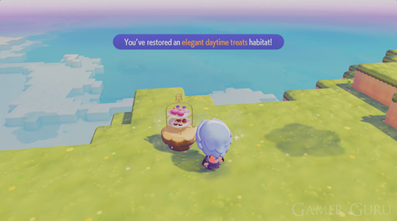 The Elegant Daytime Treats habitat can only be constructed within Pallet Town, which acts as the central residential area where players can build houses and invite Pokémon companions. After you unlock the Afternoon Tea Set reward from the Special Challenge, you must place a simple table and chair arrangement outdoors, then set the tea display on the table. Once the setup is complete, the game registers it as the Elegant Daytime Treats habitat. This decorative spot becomes a relaxing tea area where Espeon may appear, but only during daytime hours.
