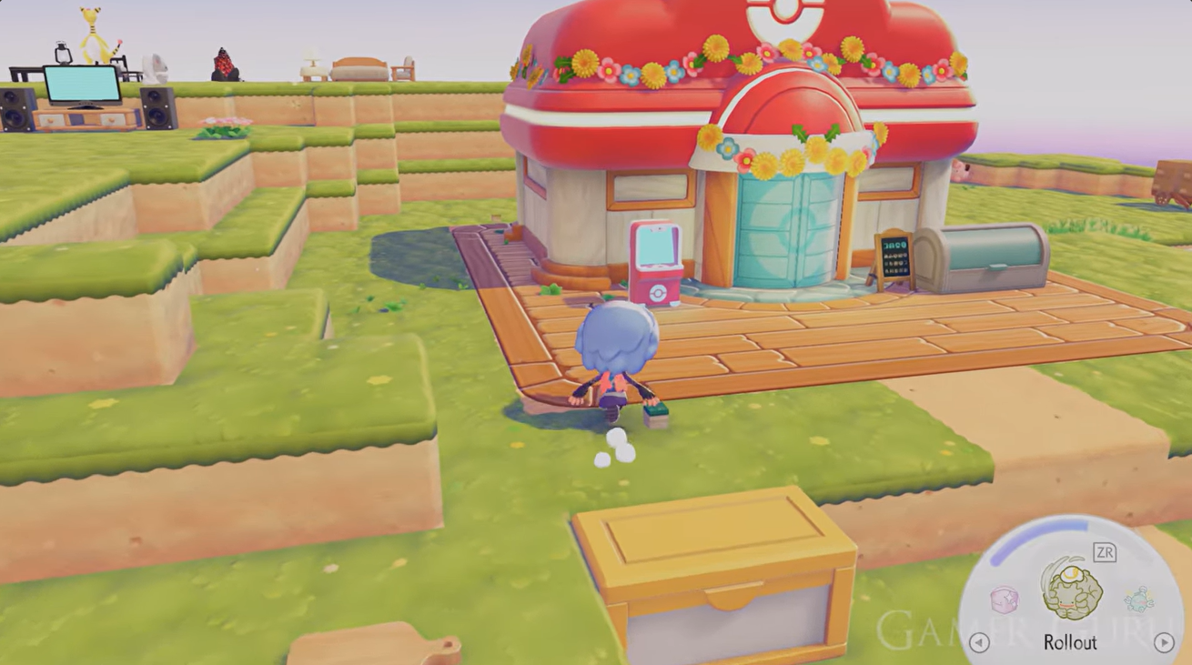 The setup itself represents Espeon’s refined aesthetic. The tea stand, desserts, and relaxed seating area symbolize a calm midday atmosphere, which aligns with Espeon’s graceful and intelligent nature. This thematic habitat design is part of Pokopia’s broader system where different Pokémon prefer specific decorative environments.