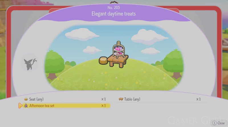 After obtaining the Afternoon Tea Set, you can construct Espeon’s habitat.