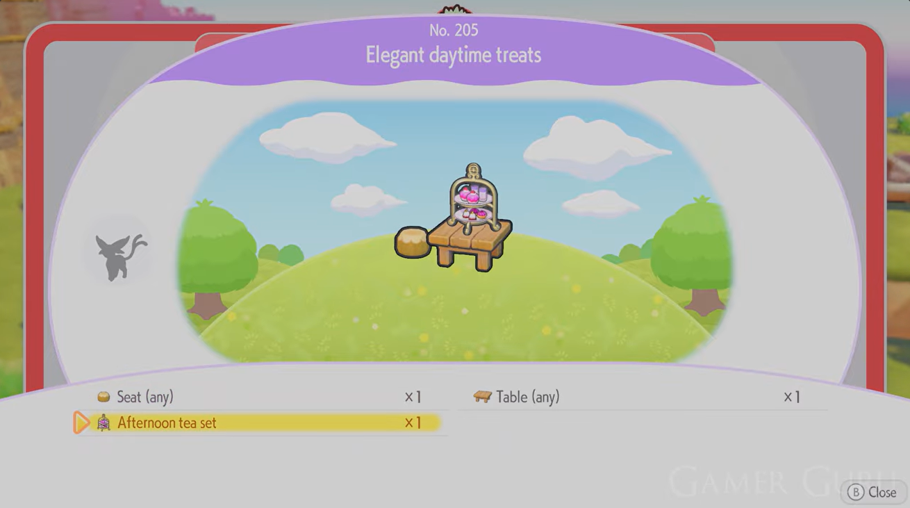 In Pokémon Pokopia, many Pokémon appear only when their preferred habitats are restored. Espeon is tied to a decorative environment called the Elegant Daytime Treats habitat, which revolves around a small tea table setup. To create this habitat, you first need to unlock the Afternoon Tea Set, an item obtained through a specific challenge involving inviting a Pokémon to live in your house. Once you build the setup in Pallet Town, Espeon can begin appearing during the day.