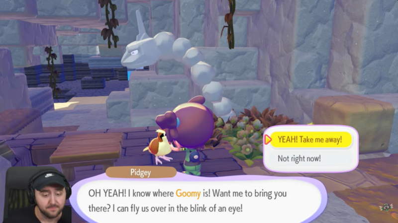 Confirm the fast travel option when prompted. Your flying Pokémon will then carry your character directly to the selected Pokémon location, completing the fast travel process.