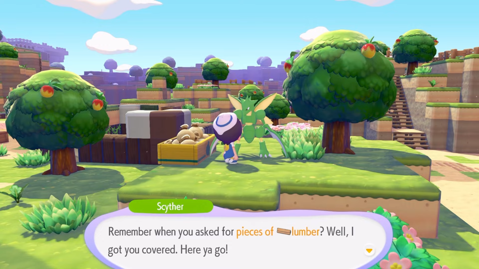 Pokémon pull items from the box, process them (logs become lumber), and deposit results. They may also gather and add items back.