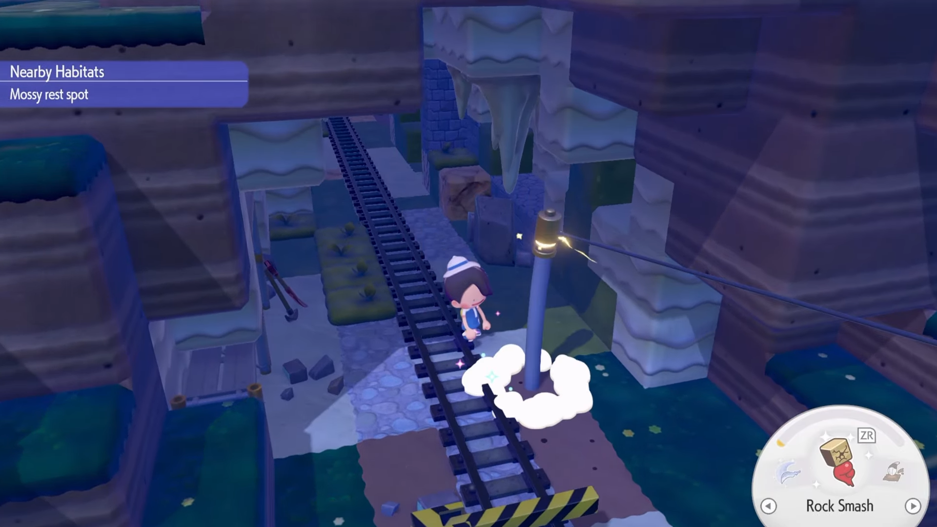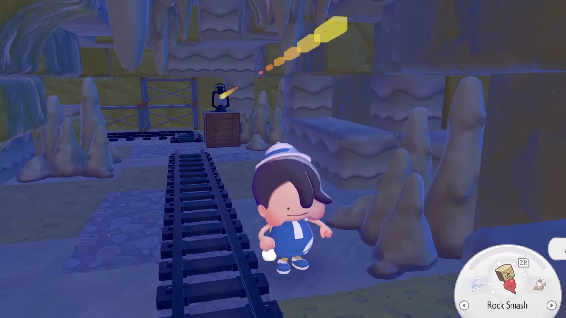 Following this, you will need a lantern. Starting from the Pokémon Center, follow the railroad tracks through the cave until you reach a room containing several lanterns.