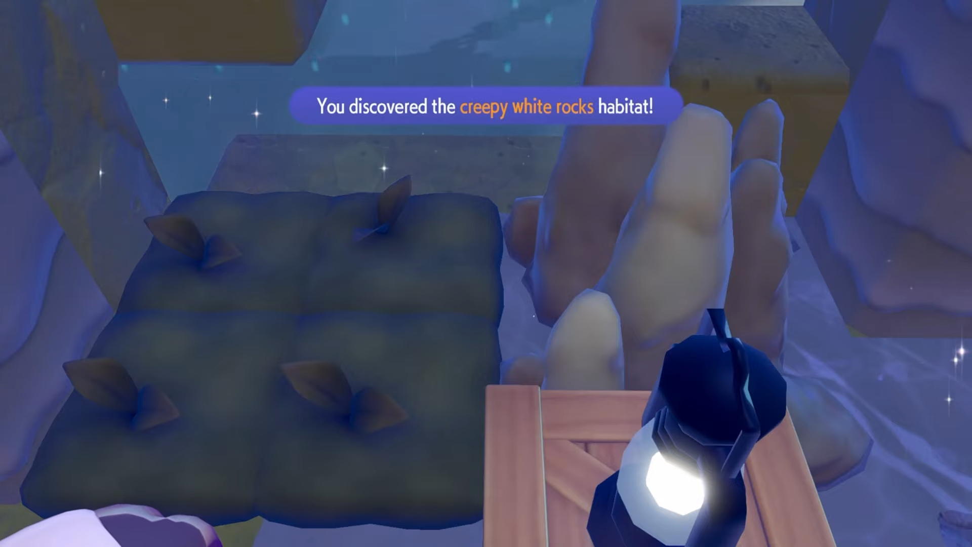 Once the lantern is connected to the power source, interact with it to activate the creepy white rocks habitat.