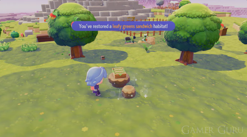 Pallet Town includes farming plots where players can grow vegetables, which is necessary to unlock the Sandwiches reward. After completing the farming objective and claiming the item from the Pokémon Center PC, you must construct the habitat somewhere within Pallet Town. If the setup is placed in another region such as Skylands or the Withered Wastelands, Leafeon will not appear even if the habitat looks correct. The game checks the region before spawning the Pokémon.
