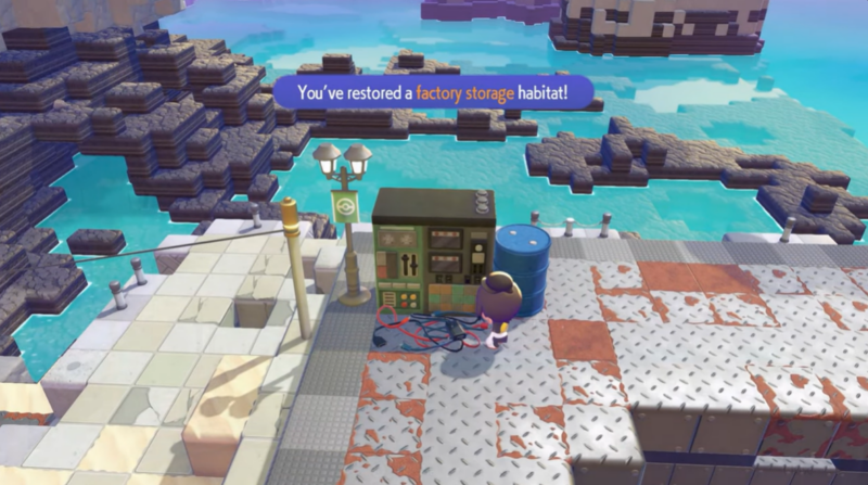 Return to the location where Magnemite appeared earlier and begin assembling the Factory Storage habitat using all the collected materials.