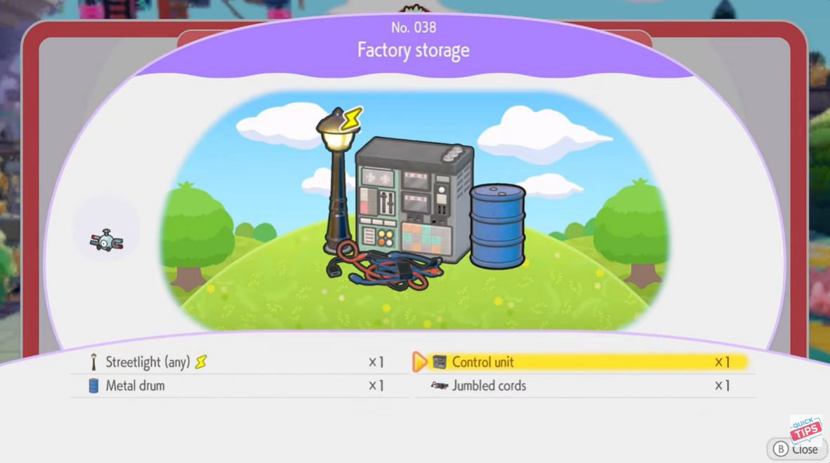 Control Units and Jumbled Cords appear throughout this region and are usually found near clusters of mechanical objects or near abandoned equipment. Metal Drums can also be found nearby, typically placed close to the same machinery structures where Control Units appear. Streetlights are far easier to find because they can spawn in multiple regions across Pokopia, meaning you can gather one during normal exploration if you keep an eye out.