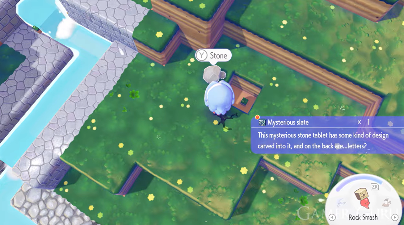 Begin by exploring the world and collecting Mysterious Slates from shiny spots that appear on the ground. These glowing sparkles can appear in multiple areas, and interacting with them gives you a chance to receive a slate.