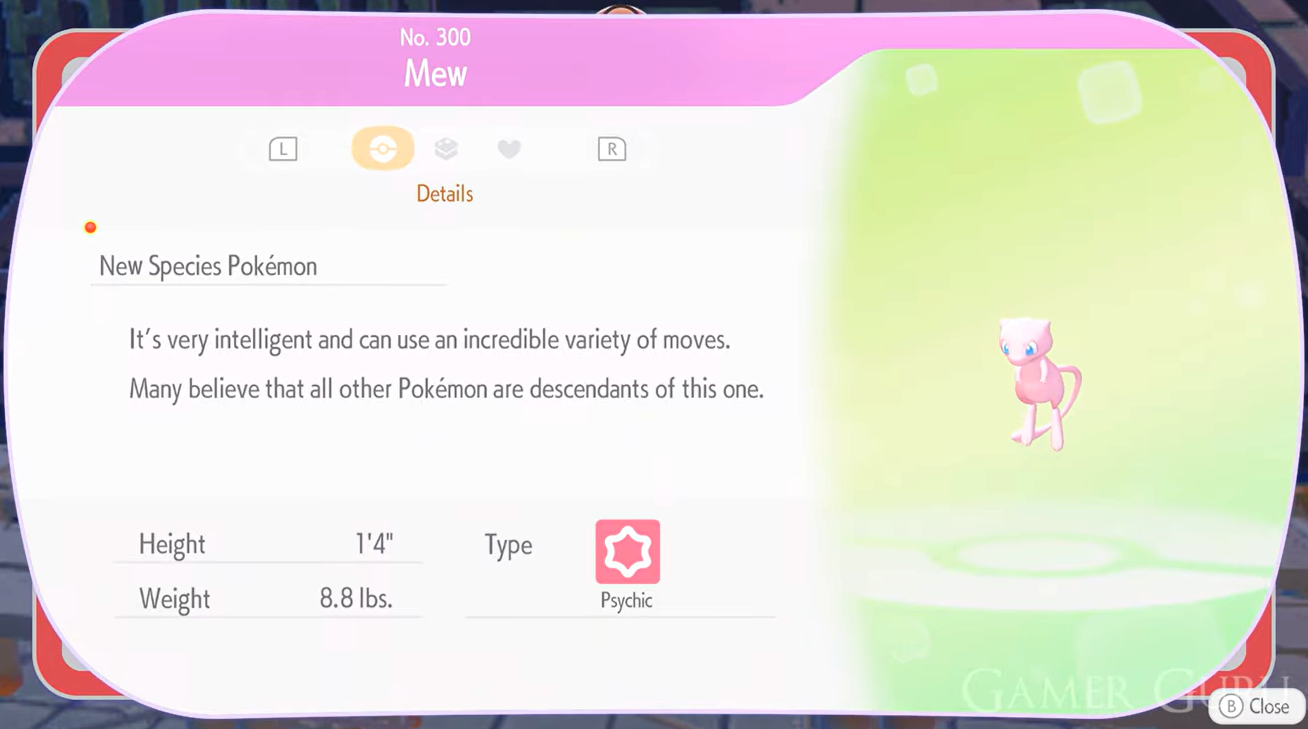 The Pokédex description highlights that Mew is extremely intelligent and capable of using an incredible variety of moves. According to in-game lore, many researchers believe that all other Pokémon may be descendants of Mew, reinforcing its status as one of the most ancient and powerful mythical creatures in the game.