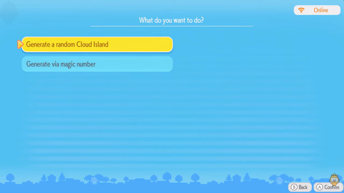 Choose whether to generate a random island or enter a magic number seed.