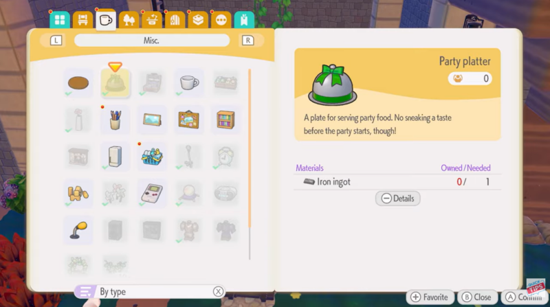 Food preparation and presentation play a small but important role in Pokémon Pokopia’s gameplay systems. As you progress through quests and interact with different crafting mechanics, you will occasionally need to serve meals using a Party Platter. This item functions as a decorative serving plate that allows you to place prepared dishes on a table, usually to complete cooking or hospitality-related tasks.