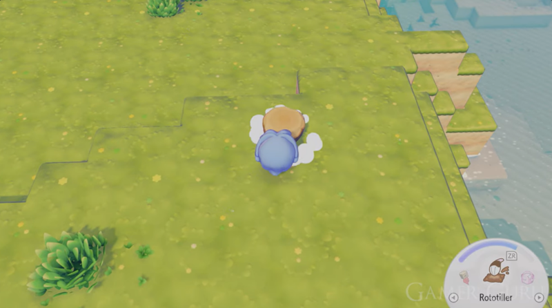 Place a table somewhere in Pallet Town where you want the Pokémon habitat to appear. The table acts as the central piece of the setup.