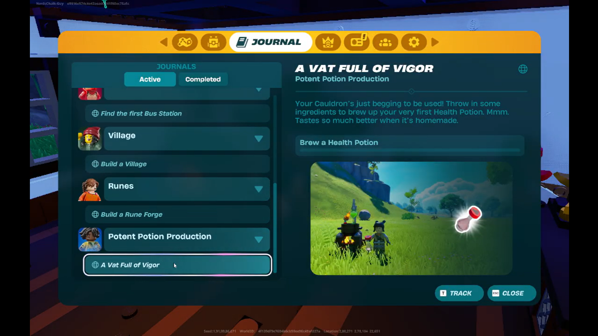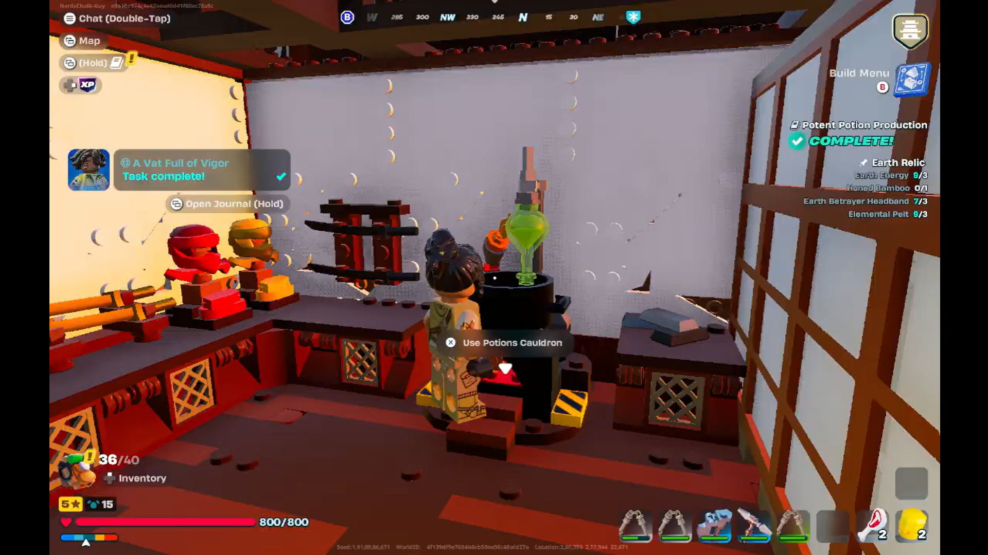 A Vat Full of Vigor is a Potent Potion Production quest in LEGO Fortnite Ninjago that introduces potion brewing mechanics. Centered around the Potions Cauldron at your base, this quest teaches you how to brew and consume Health Potions.