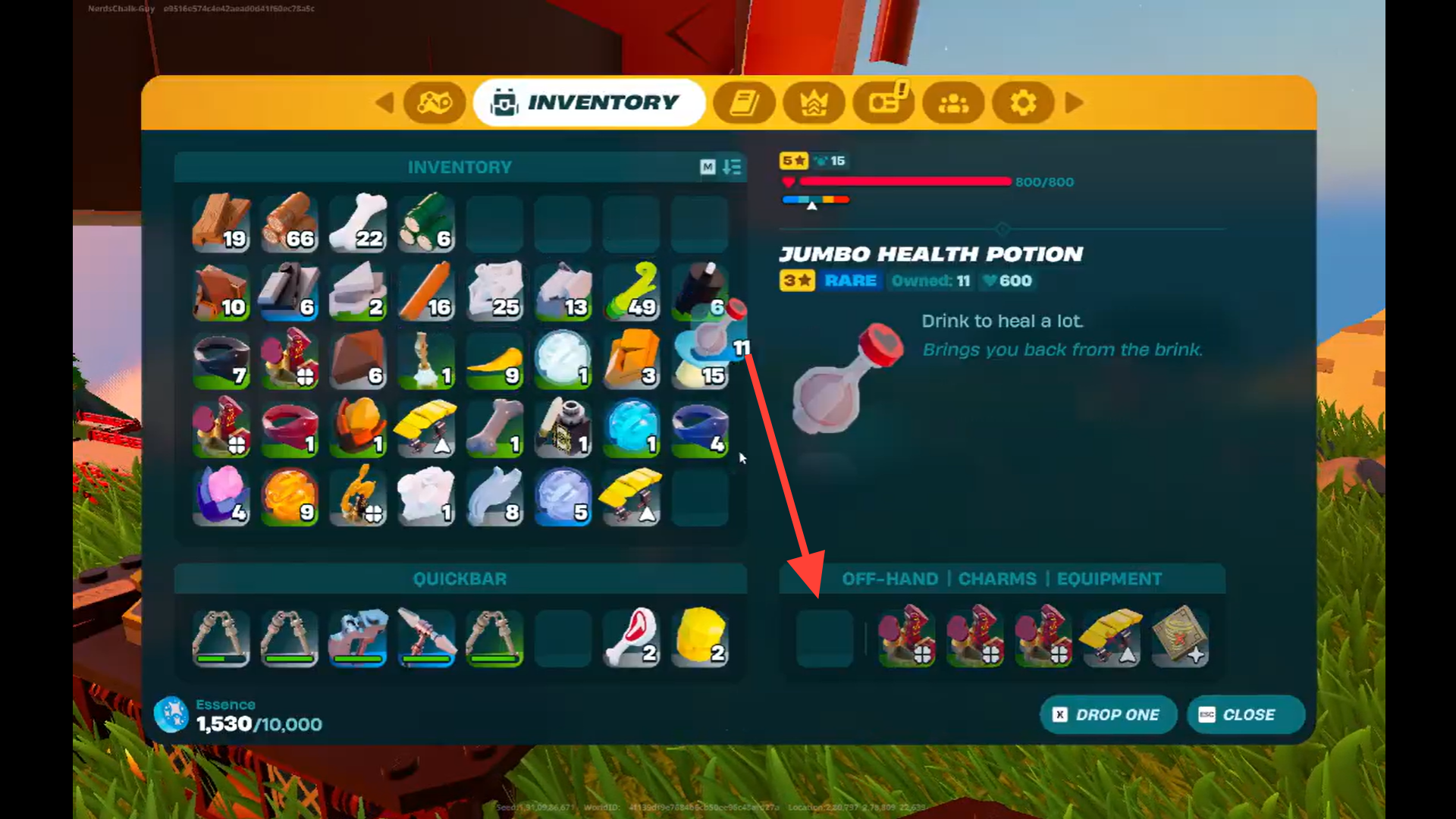 After doing this, the potion is now in your hand. Drink the potion by clicking the LT button.
