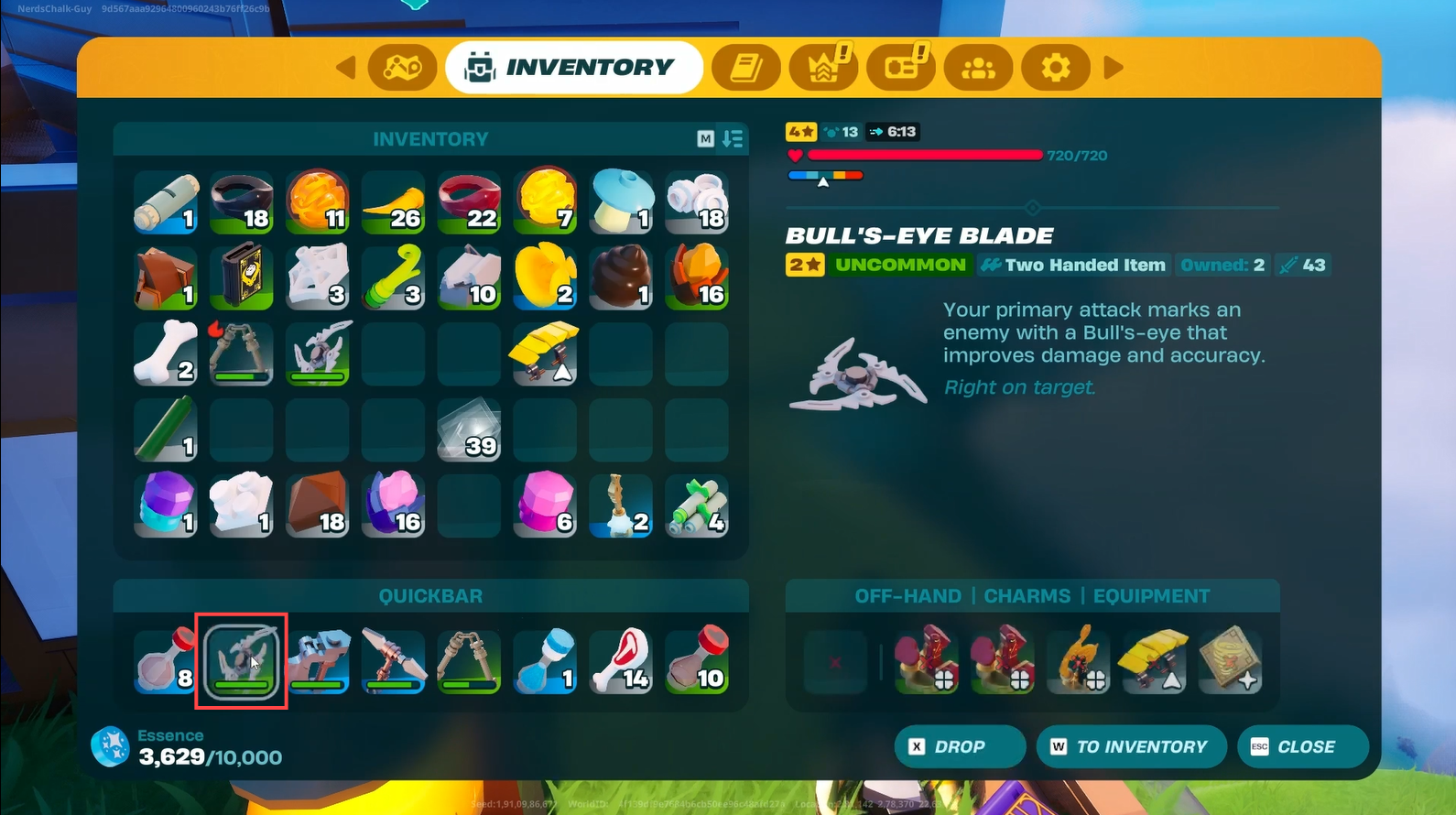 Open your inventory and move the Hero Weapon to your quickbar so it can be used.