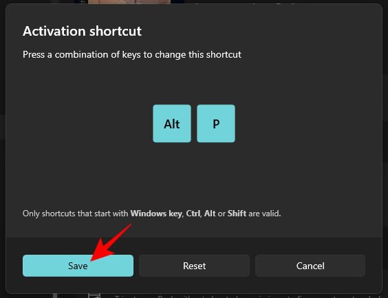Then type your new shortcut (make sure to start with Win, Ctrl, Alt, or Shift keys). And click on Save.