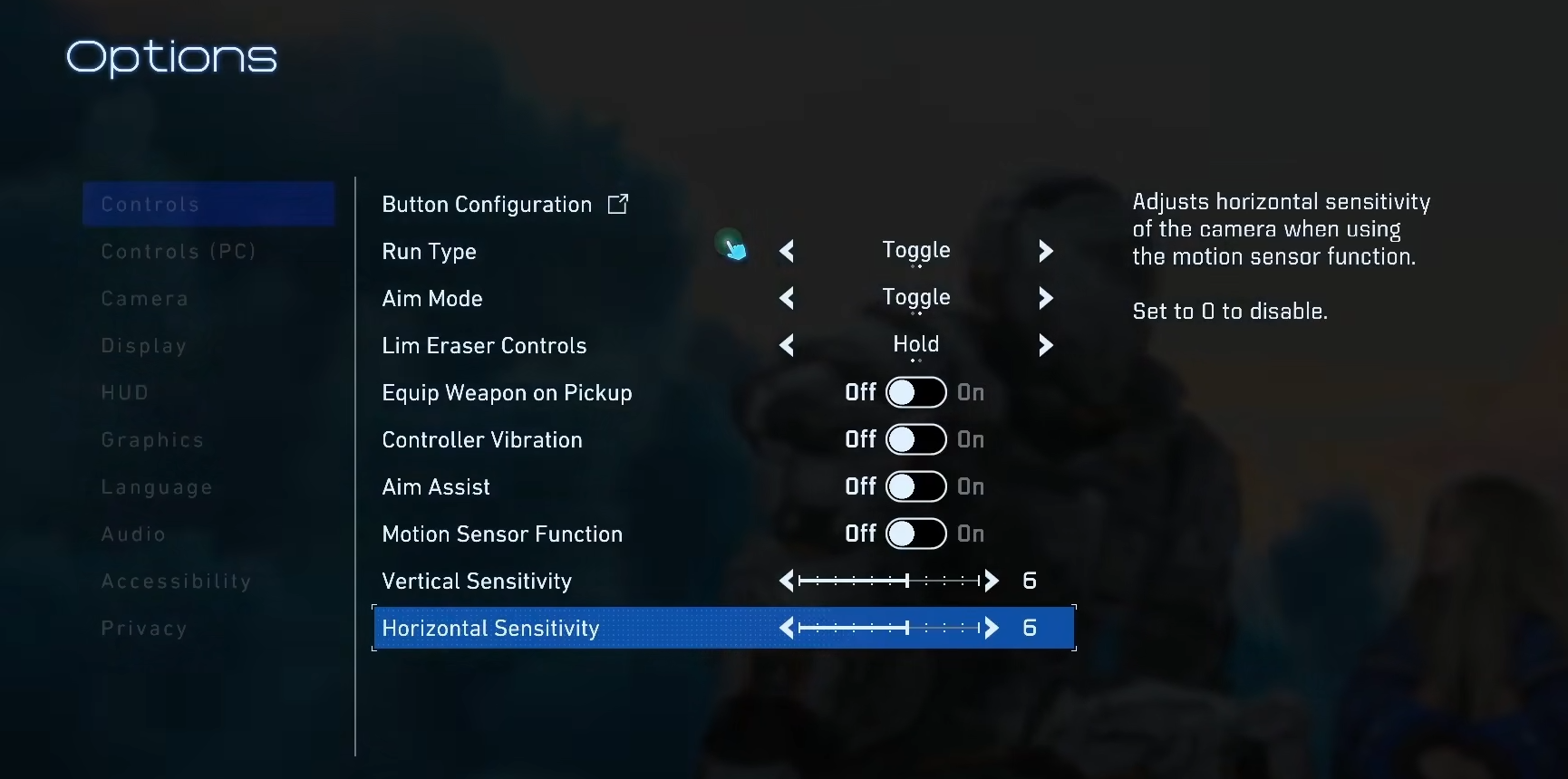 Navigate to camera and aim options; set vertical sensitivity to 6.
