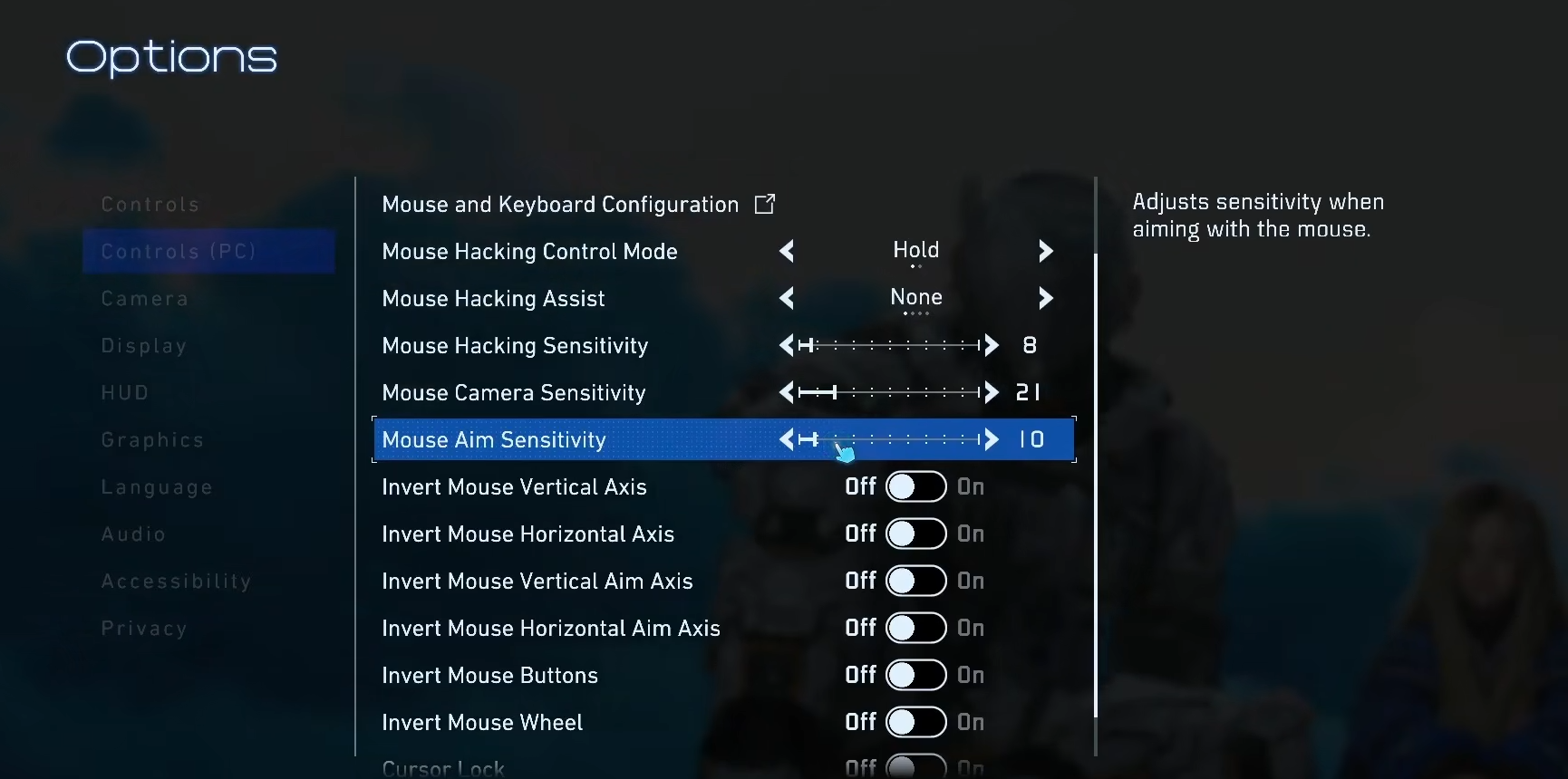 Set Mouse Aim Sensitivity uniformly at 33 for both horizontal and vertical to maintain consistency in fast-paced swaps between aiming and cursor-based hacking. Avoid mismatched values; uniformity builds muscle memory for Pragmata’s dual-control demands.