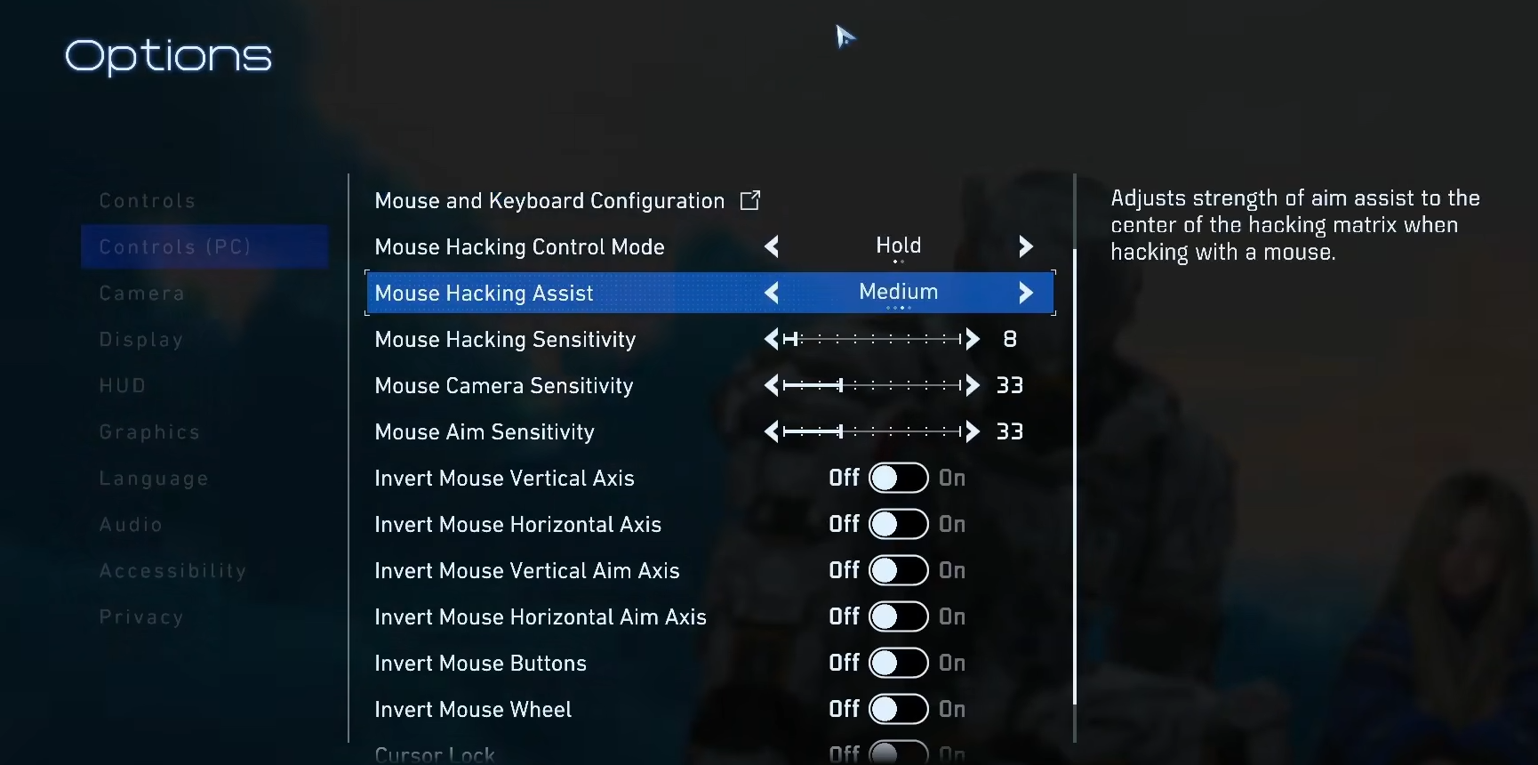 | Aim Assist | On for easier targeting | Mouse hacking/action assist on strong |