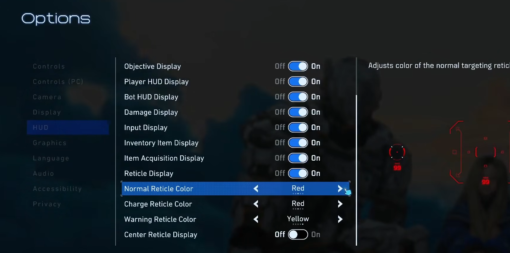 Change the white Normal Reticle Color for a vivid red or preferred color to cut through dark environments or personal visibility issues.