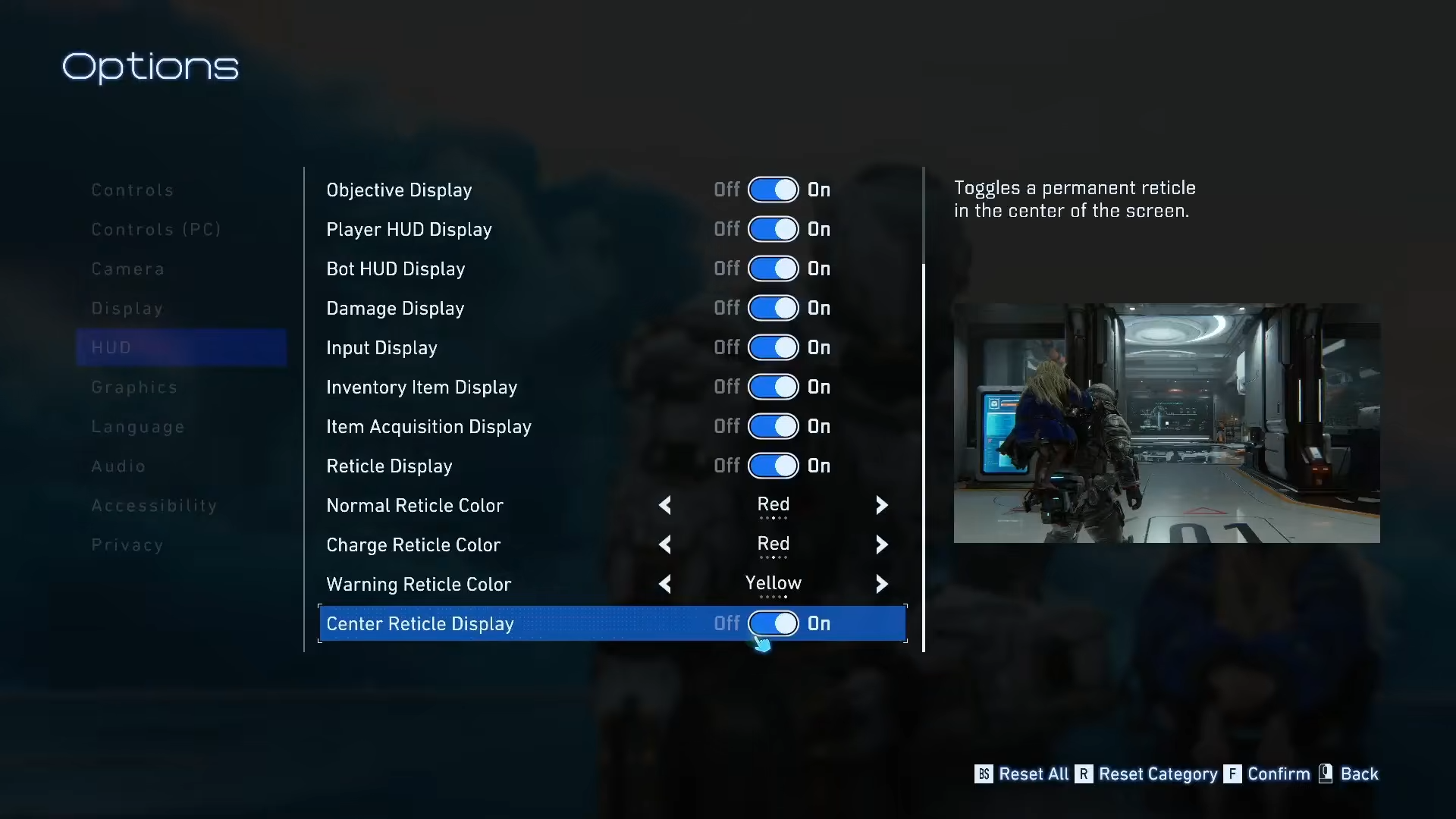 Enable the Center Reticle Display for constant reference, aiding quick repositions without aim drift.