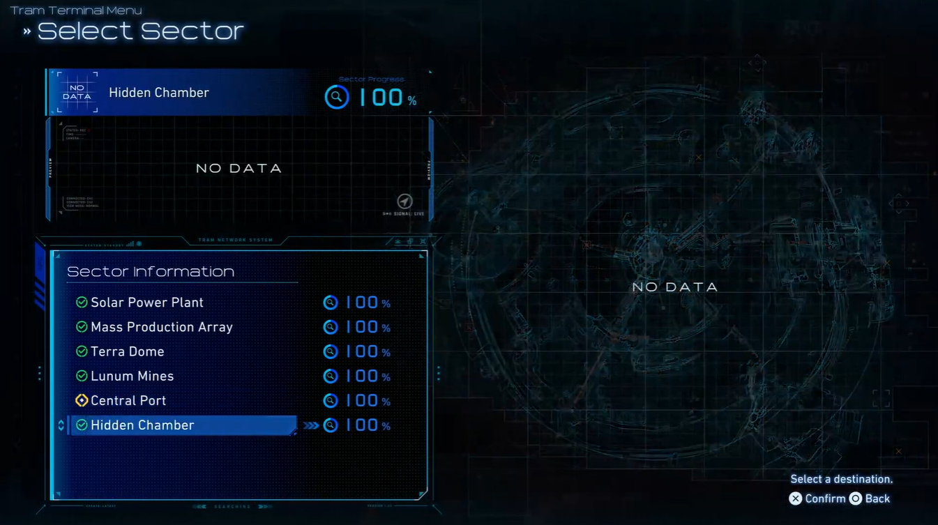 - 100% completion of hidden chamber pod missions is required.