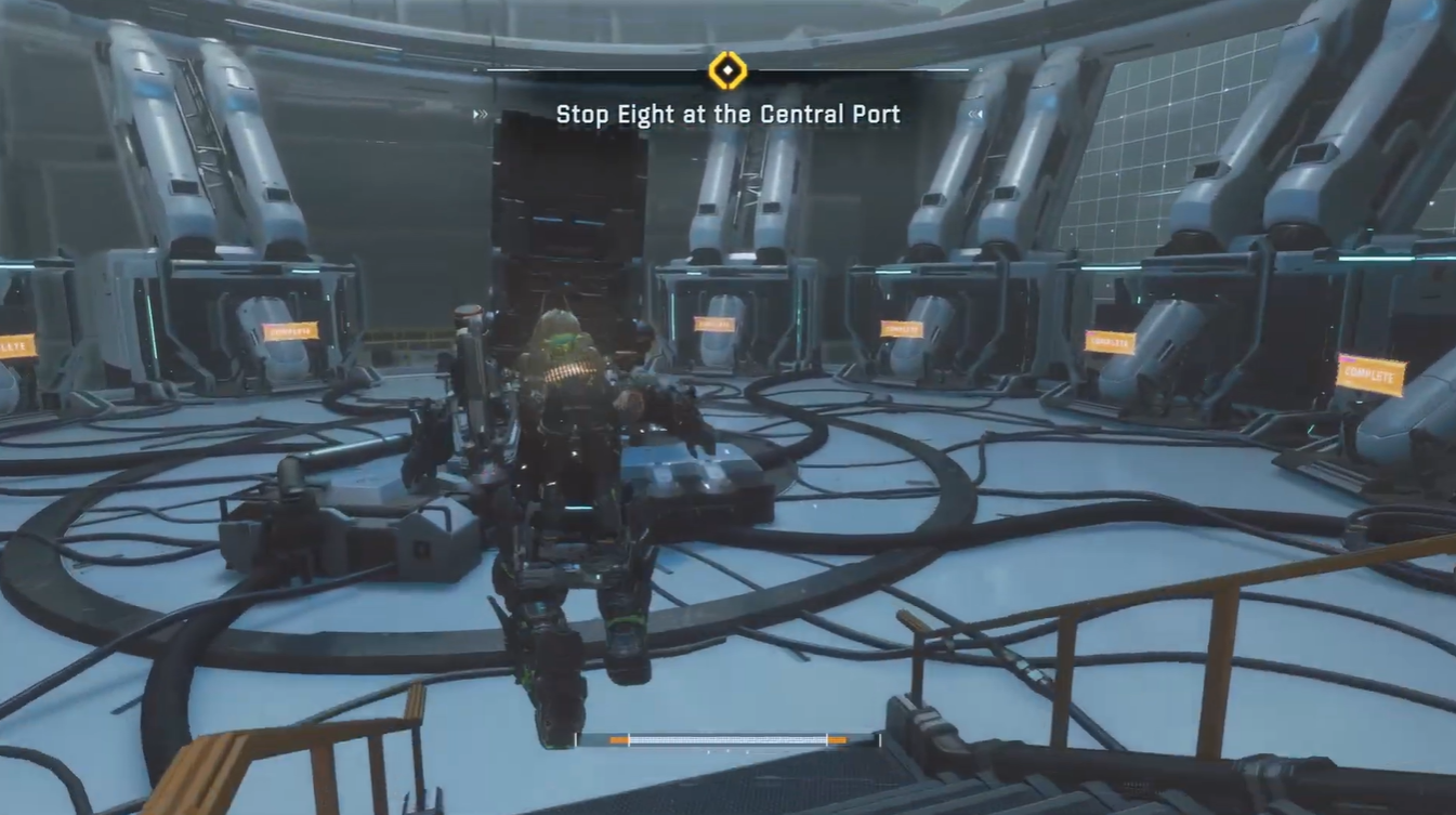 Interacting with this area triggers the real objective — “Stop Eight at Central Port.”