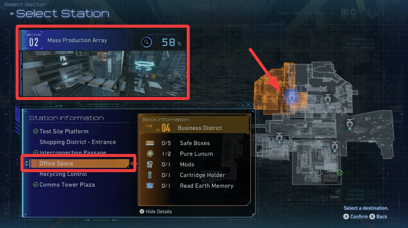 The Sweeper Bots are most reliably found in the Mass Production Array, a large industrial zone filled with automated systems and patrol routes. You’ll want to take the tram into this region and make your way toward the Office Space section, which acts as a consistent spawn area.