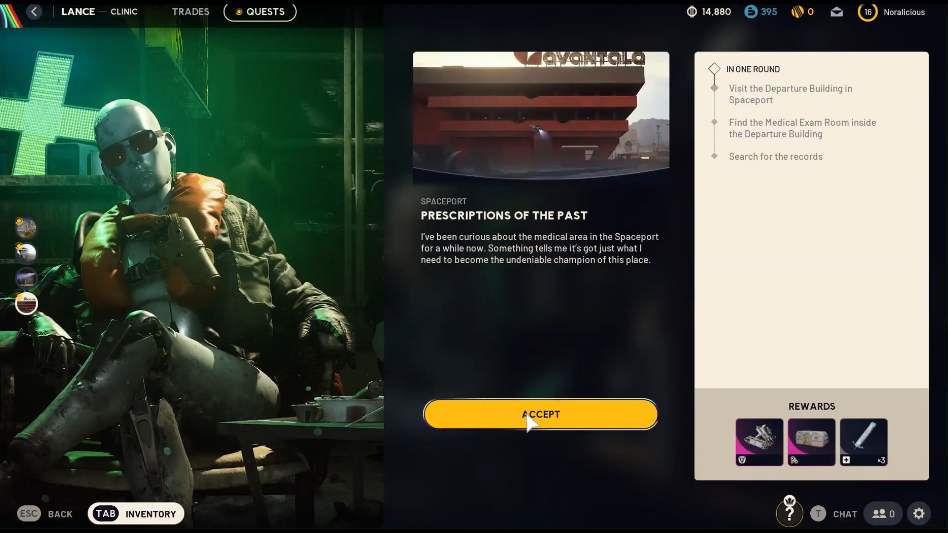 "I've been curious about the medical area in the Spaceport for a while now. Something tells me it's got just what I need to become the undeniable champion of this place."