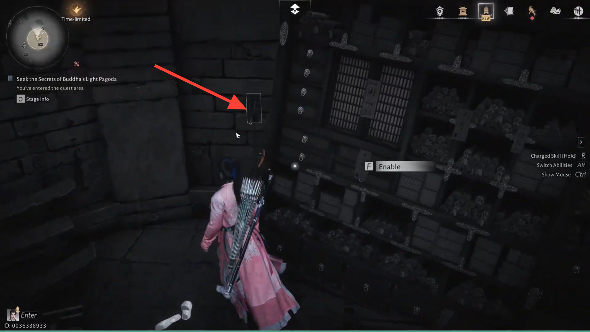 Go around the hall and find a button that opens the mystery floor into a lower ground. Enter the mystery area beneath the Pagoda.