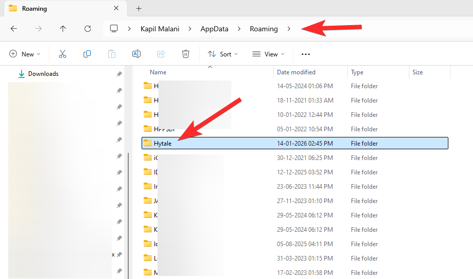 Delete the Hytale folder here. We used shift+delete to permanently delete it.