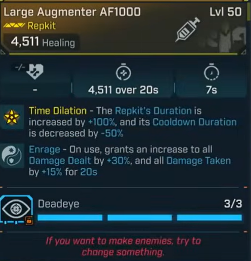 Large Augmenter AF1000. Boosts core combat stats, crucial for scaling Rafa’s build into the late game.
