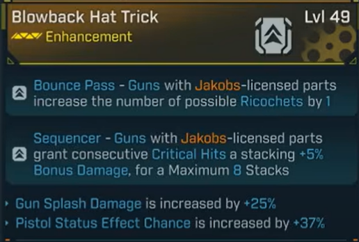 | Jakobs shotguns (any) | Shotgun | Crit pellets trigger ricochet loops |