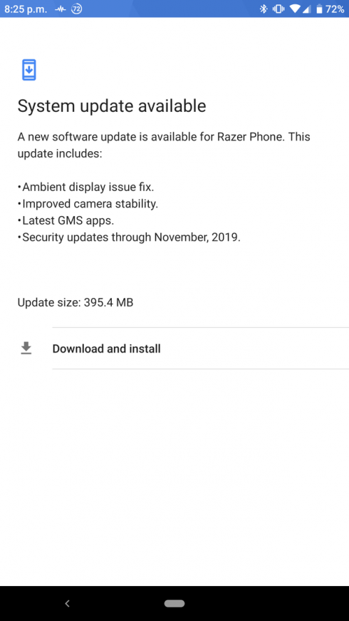 December 12, 2019: Razer hasn’t proved to be very reliable when it comes to software updates for the original Razer Phone. So, whatever update the company releases comes off as a blessing to users. This time, the company has released a sizeable maintenance update for the device, attempting to fix an annoying bug and improve the phone’s stability. The 395MB update fixes the Ambient Display issue, improves the stability of the camera, brings the latest GMS apps, and delivers the November 2019 security patch.