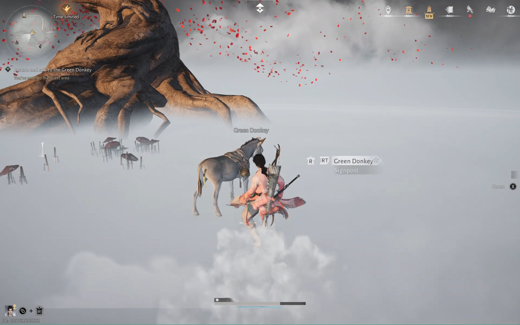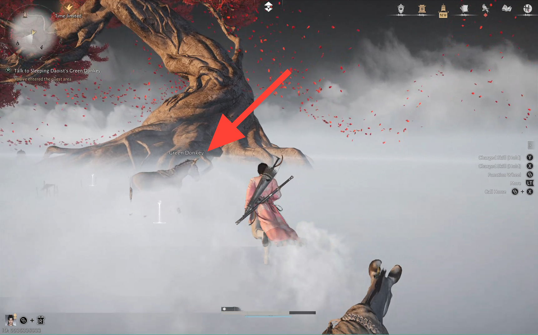 Once you enter the foggy area, speak with the Green Donkey standing in front of the large tree.