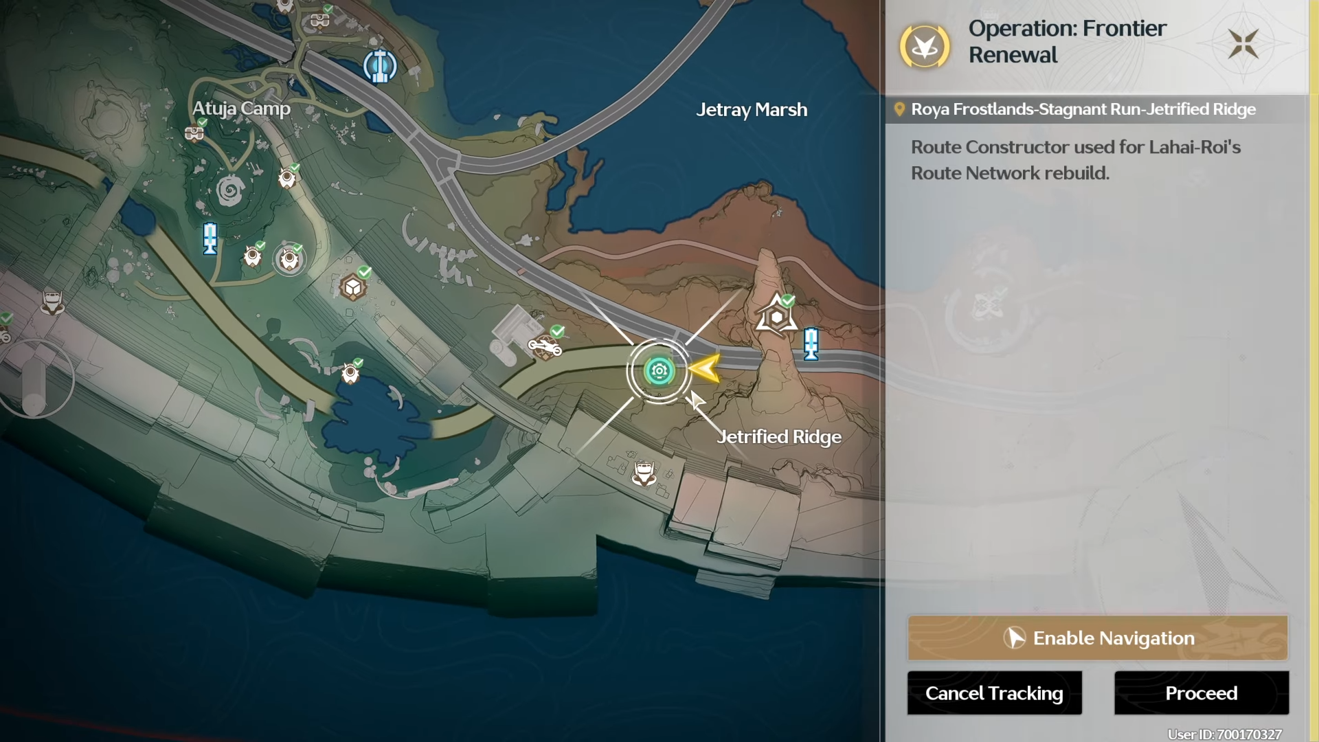 Travel to the Sol's Embrace Route Constructor icon on your Lahai-Roi map, near Jetrified Ridge.
