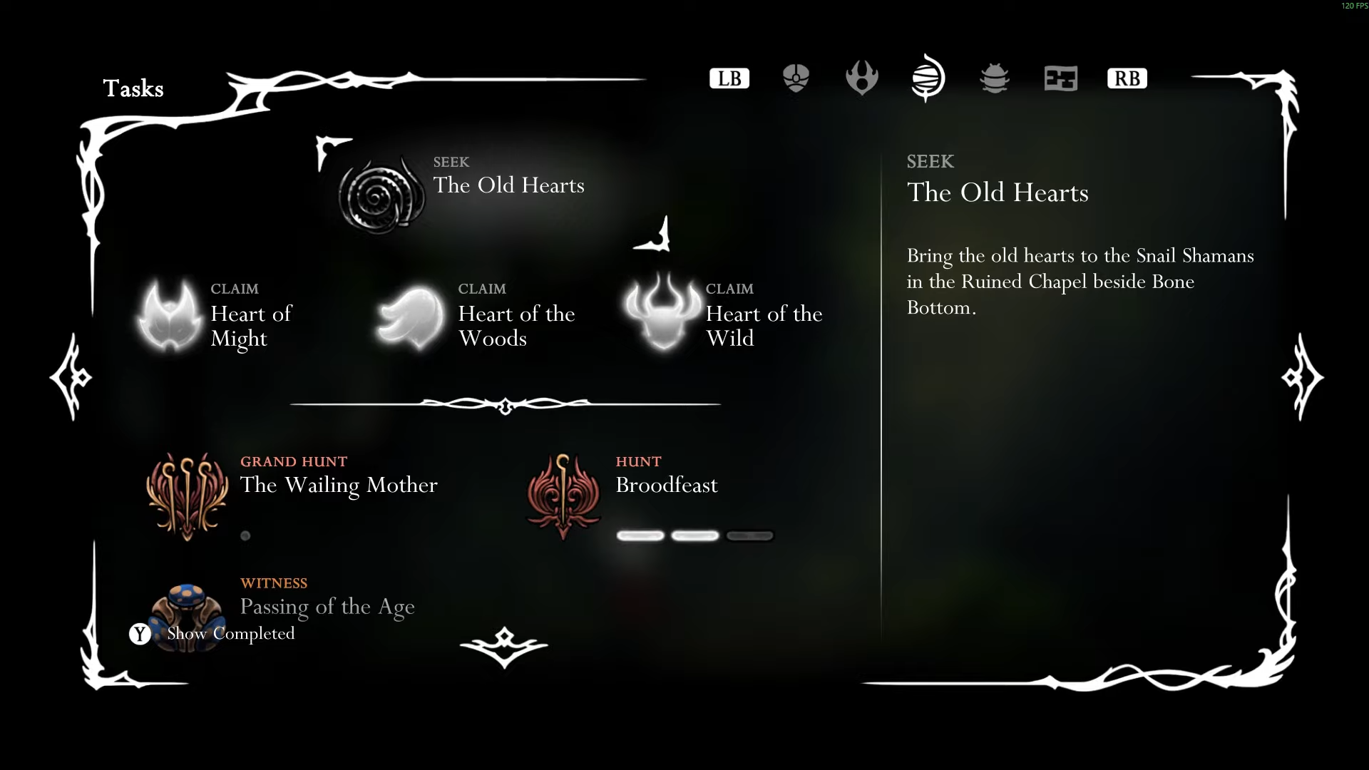 Collect three ancient hearts by finding memory bosses, playing the Elegy, and defeating each monarch in specialized combat trials. Hearts can be claimed in any order.