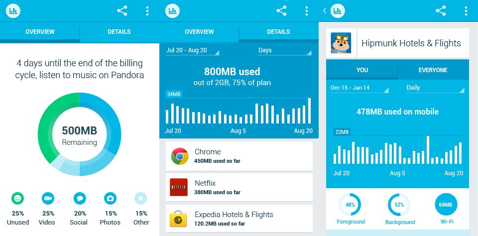 Onavo count doesn’t reduce your data usage, but provides an awesome way to keep track of it. You can even make weekly and monthly data usage reports. And it also shows a list of the 20 most popular apps and how much data they use on an average. One more notable feature of Onavo Count is that you can compare your per-app data usage with the world average on that particular app. It is from the same developer as Onavo Extend, which we mentioned earlier. You can go ahead and get Onavo count for free from the Play Store.