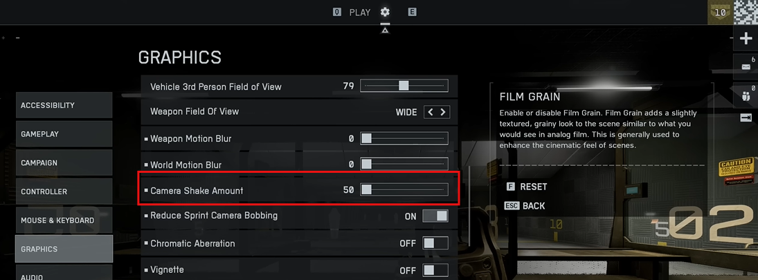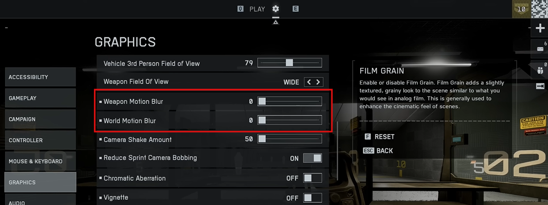 Adjust these settings to minimize visual recoil effects (camera shake) and improve control: