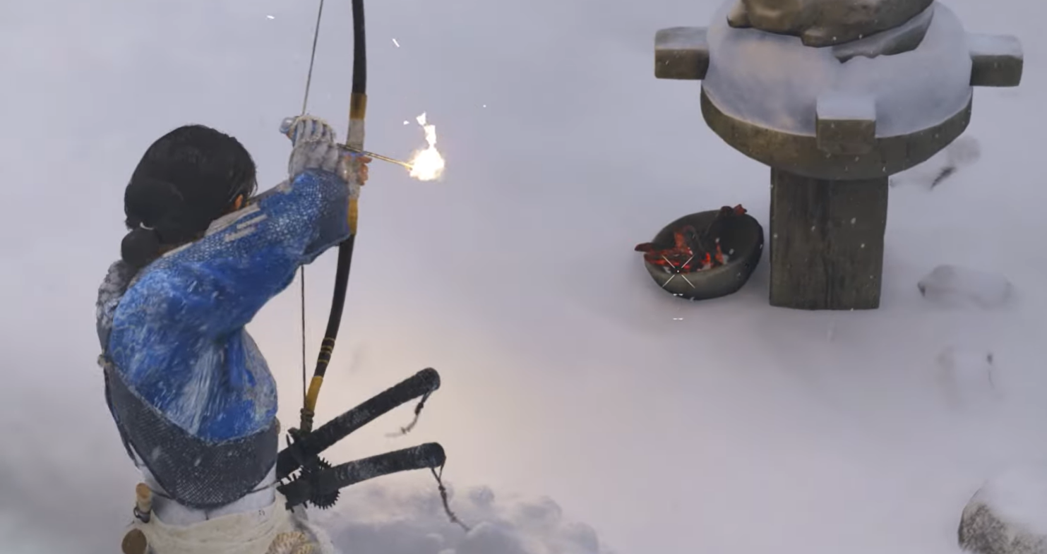 - Unlock or upgrade your Hankyu bow to use fire arrows, available for purchase and upgrades at Ran the Bowyer’s shop.