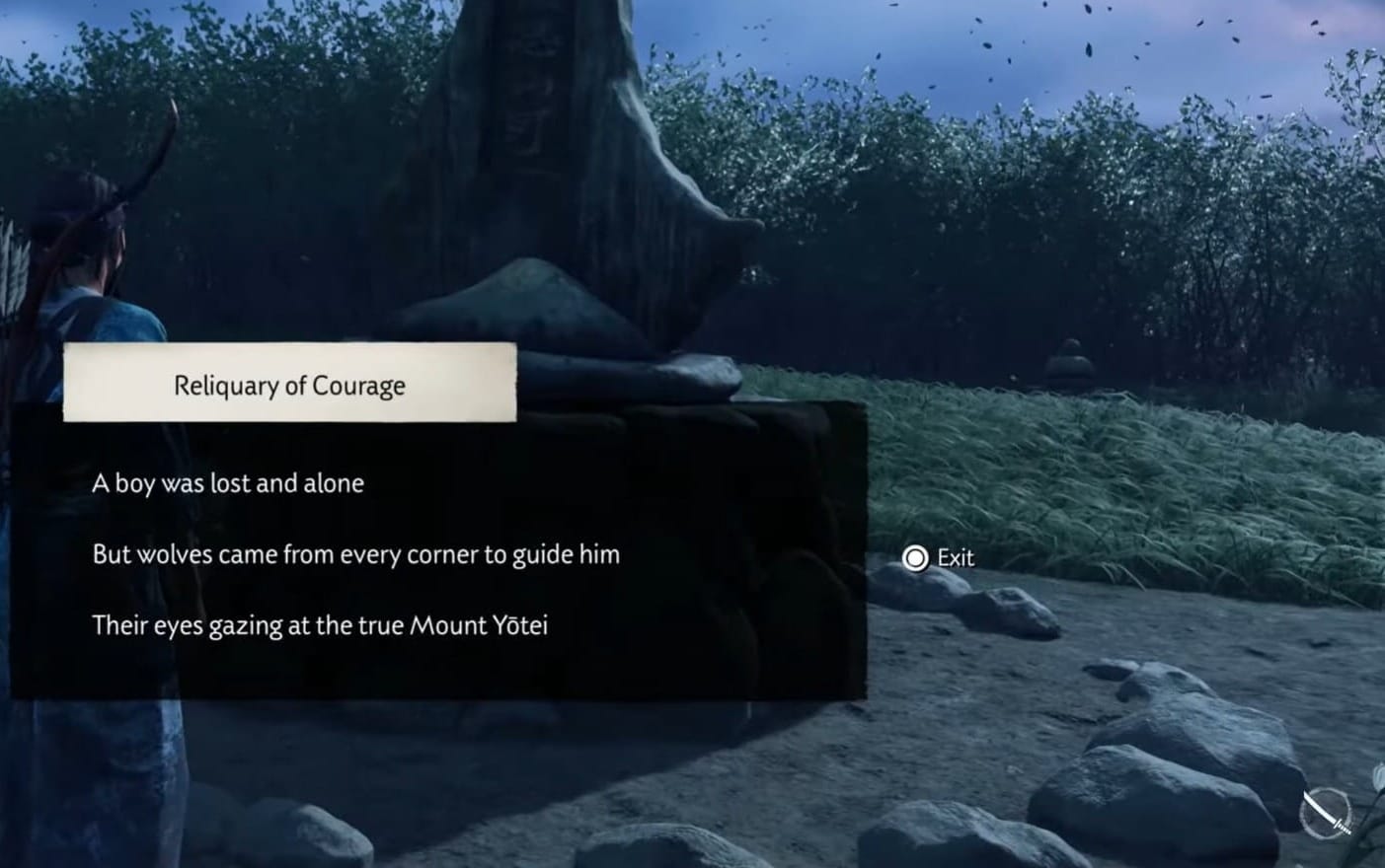 | Lore Unlock | “Virtue of Courage” inscription | Adds a lore entry explaining the virtue’s meaning in Yōtei culture |