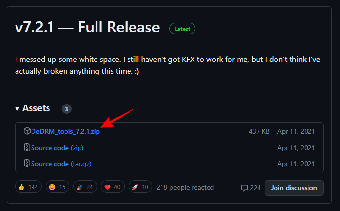 - Navigate to the aforementioned link and click on DeDRM_tools_7.2.1.zip.