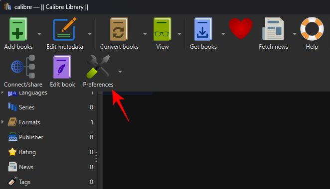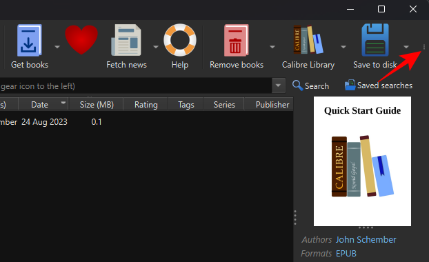 - Go back to Calibre and click on the three-dot menu at the extreme right of the toolbar above.