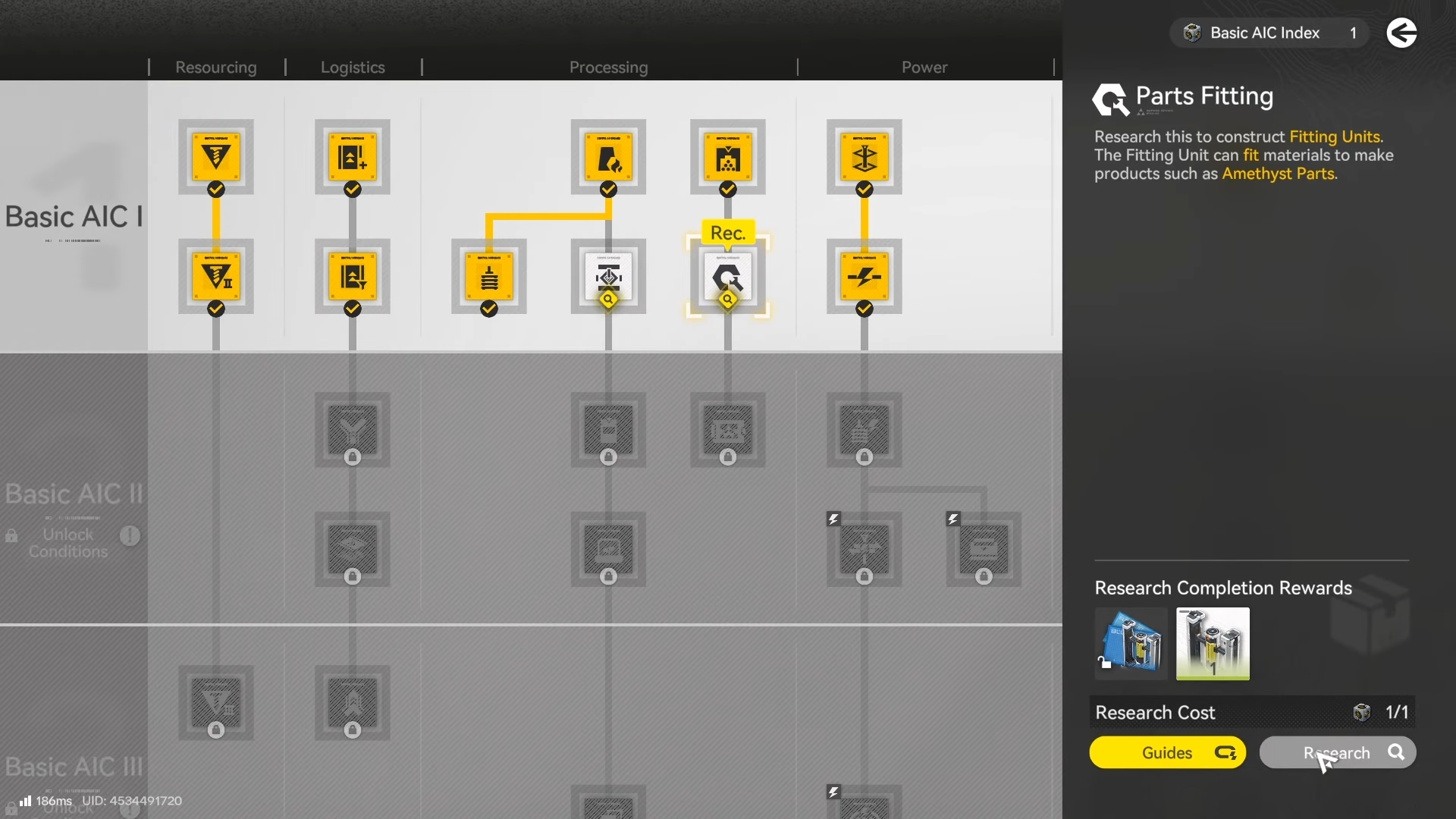 | Common blocker | No Fitting Unit unlocked yet, or not enough Amethyst Fiber/Parts stockpiled. |